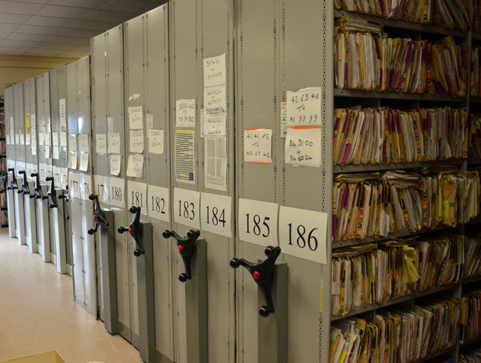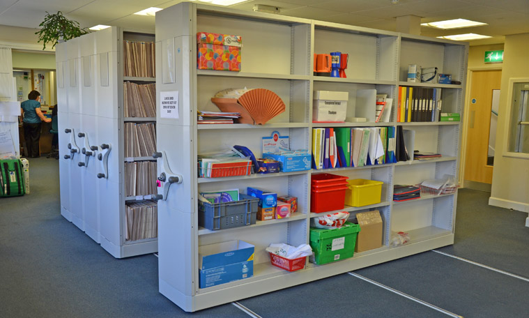 Mobile shelving is the ideal solution for storing medical records and provides the maximum capacity within the storage area whilst proving good access by opening the required aisle.